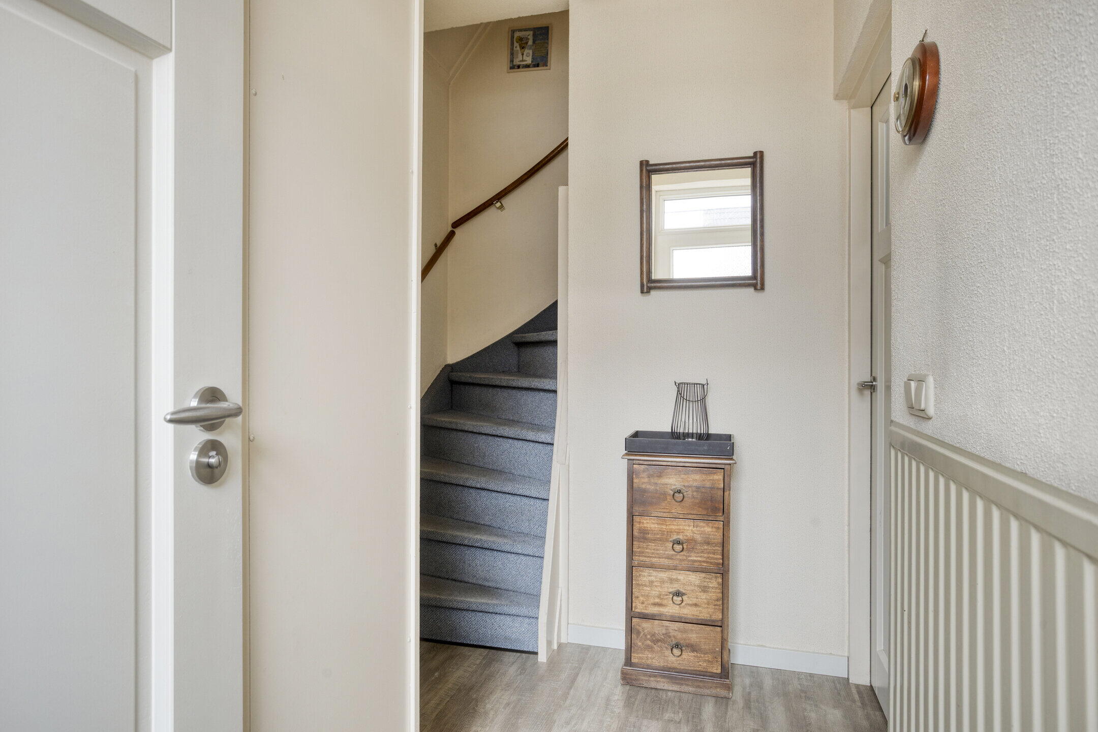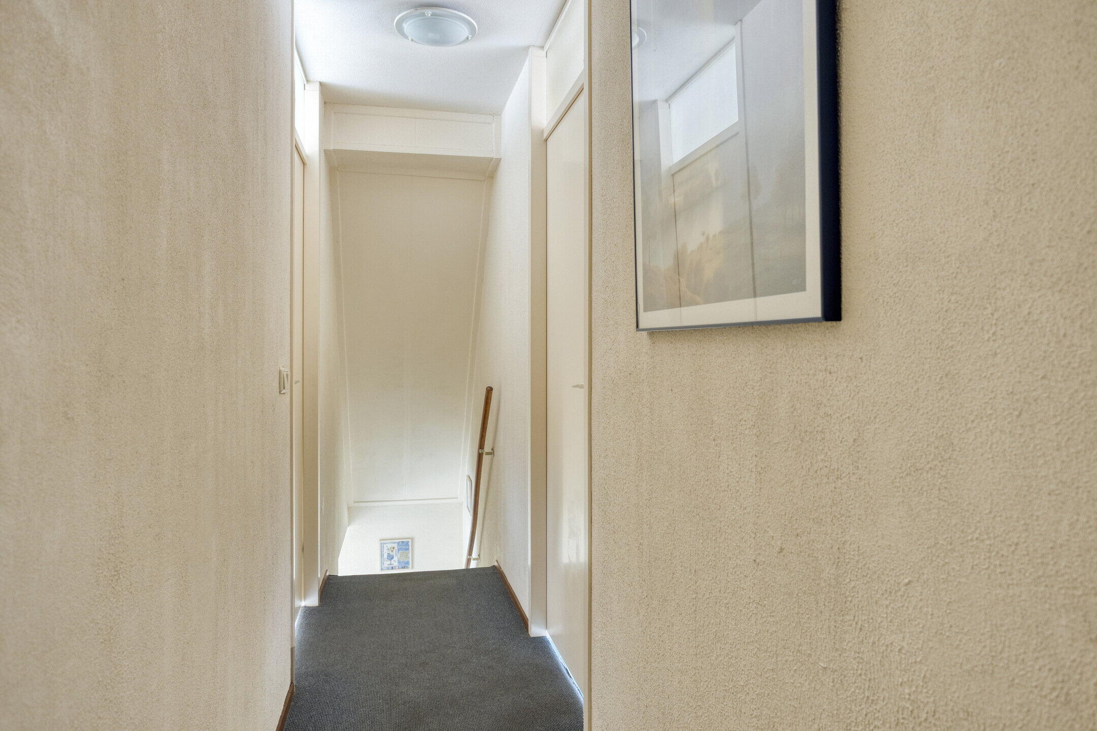 Via de entree kom je binnen in de hal met meterkast, trapopgang en een nog altijd nette toiletruimte met ventilatieraampje.