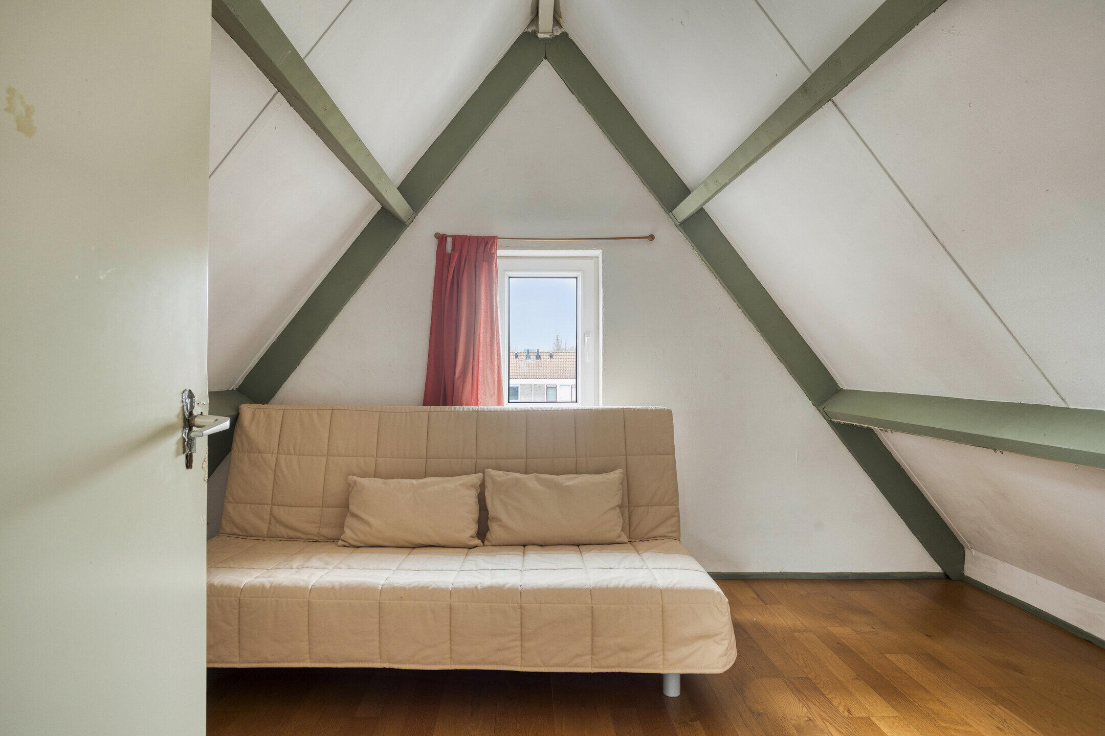 De tweede verdieping beschikt over een overloop met witgoedaansluitingen en de opstelling van de cv-installatie (Intergas, 2023, eigendom). Dankzij het dakraam is dit een aangename en lichte ruimte. Hier zijn mogelijkheden om een extra kamer te realiseren. De derde (mogelijke vierde) slaapkamer is ideaal als thuiswerkplek, kinderkamer of hobbyruimte.