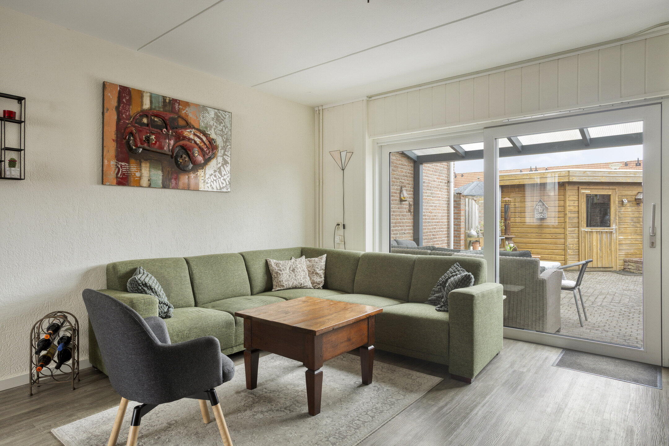 De woonkamer is tuingericht en vormt een sfeervolle, gezellige leefruimte waar je eenvoudig vrienden en familie ontvangt of geniet van een ontspannen avond thuis. Via de grote schuifpui staat de woonkamer in directe verbinding met de tuin en de aluminium terrasoverkapping — een heerlijke plek om het buitenleven te verlengen.