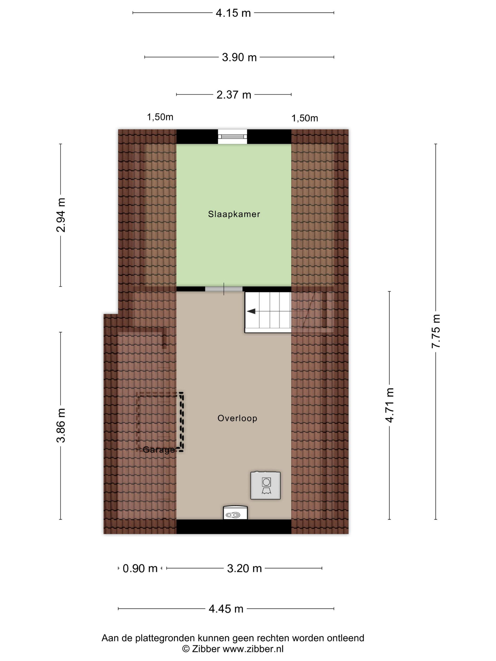 - 38 m² (8.5 meter diep en 4.5 meter breed)